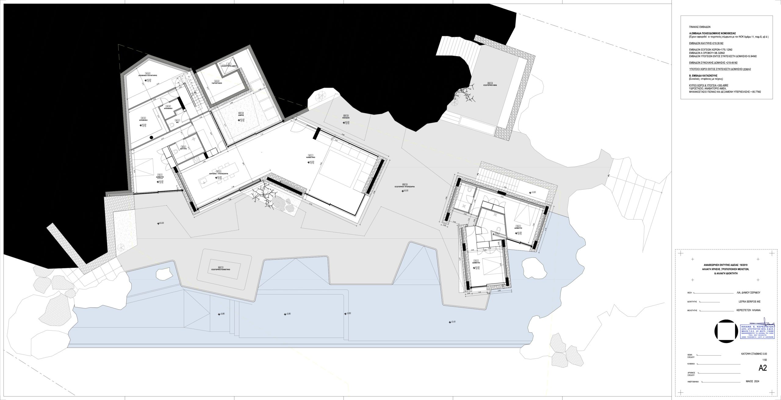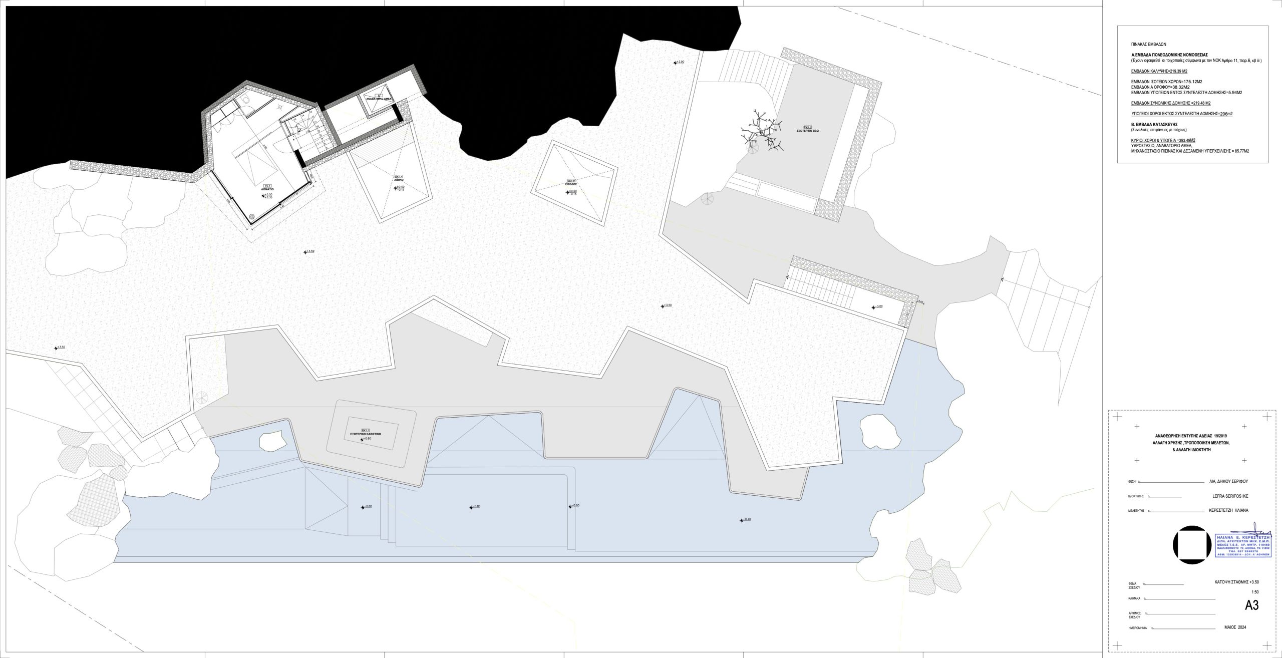LEVEL 0 : Main house = 218,63 sqm – 3 Bedrooms 3 bathrooms living room kitchen / helping areas 35,75 sqm – total 0 Level  254,38